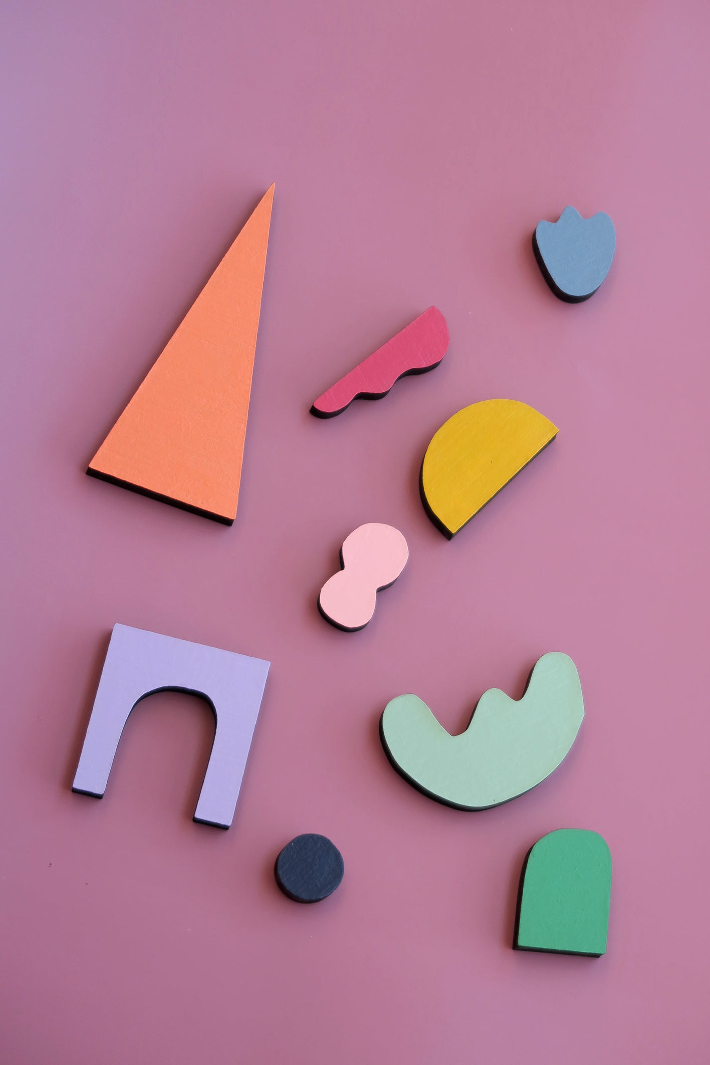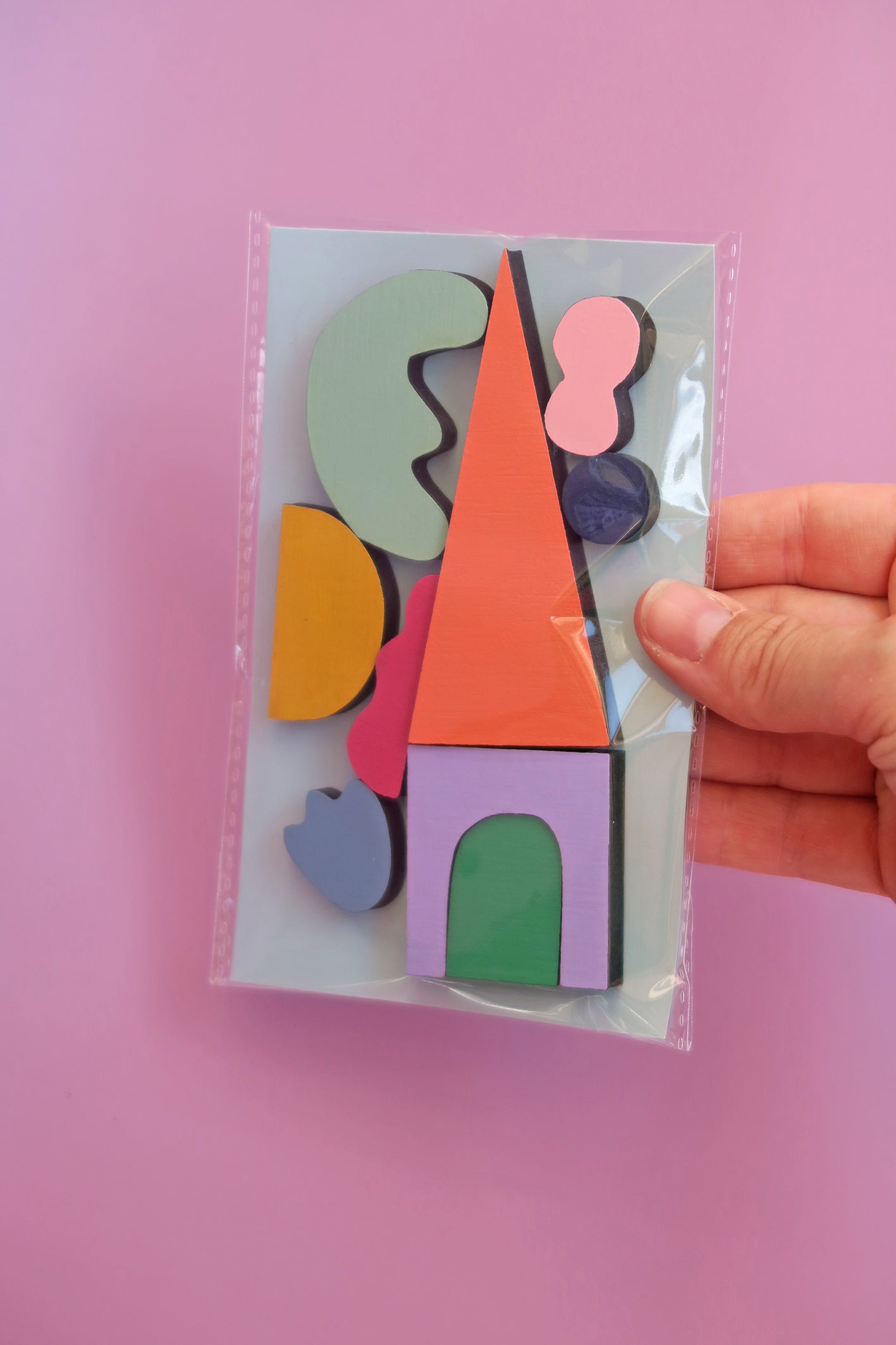 Un juego de imanes artísticos con los que puedes crear infinitas composiciones combinando sus formas y colores. Cada pieza está diseñada y pintada a mano, pensada para que al mezclarlas surjan figuras nuevas, abstractas o reconocibles, según la imaginación de quien las use.